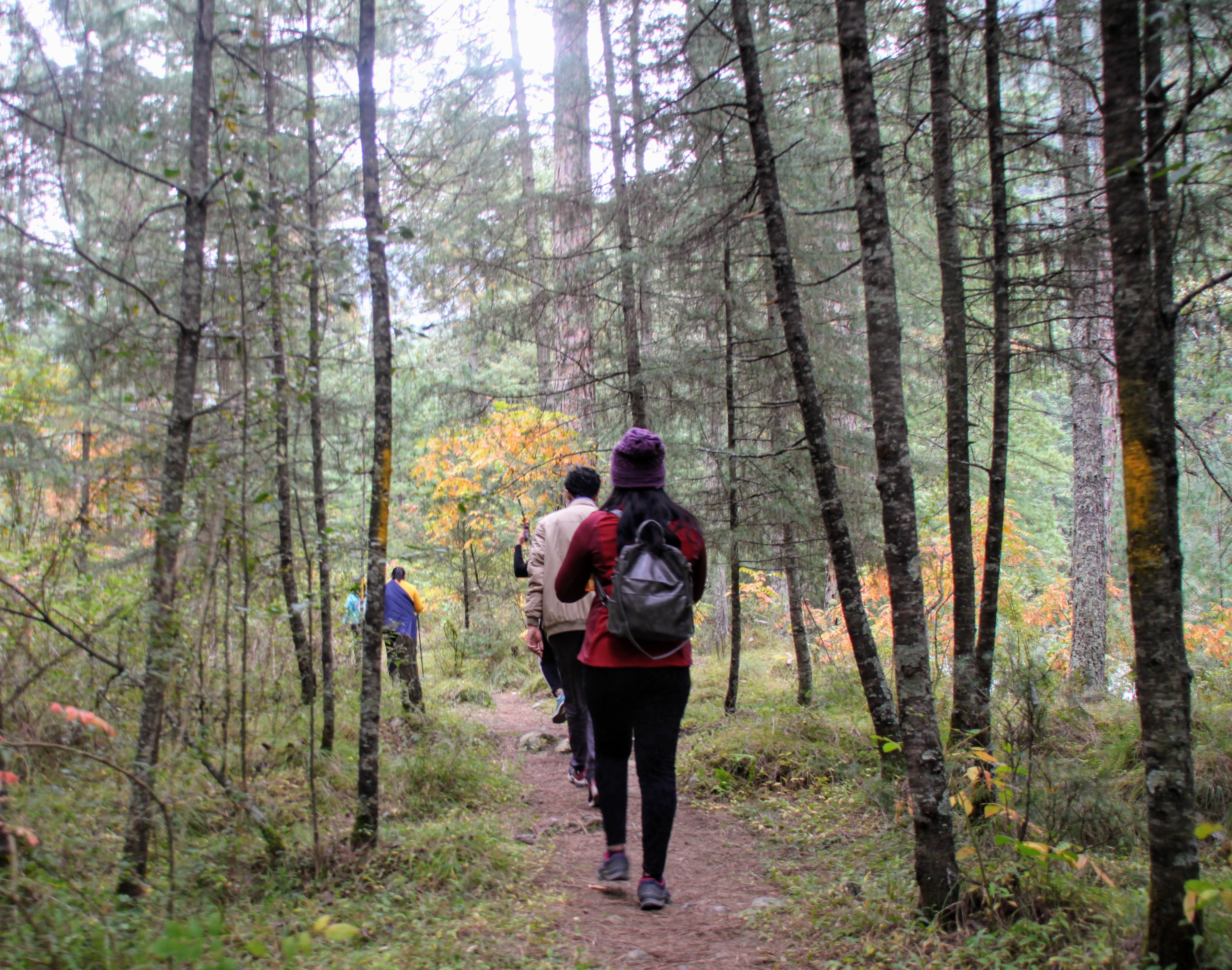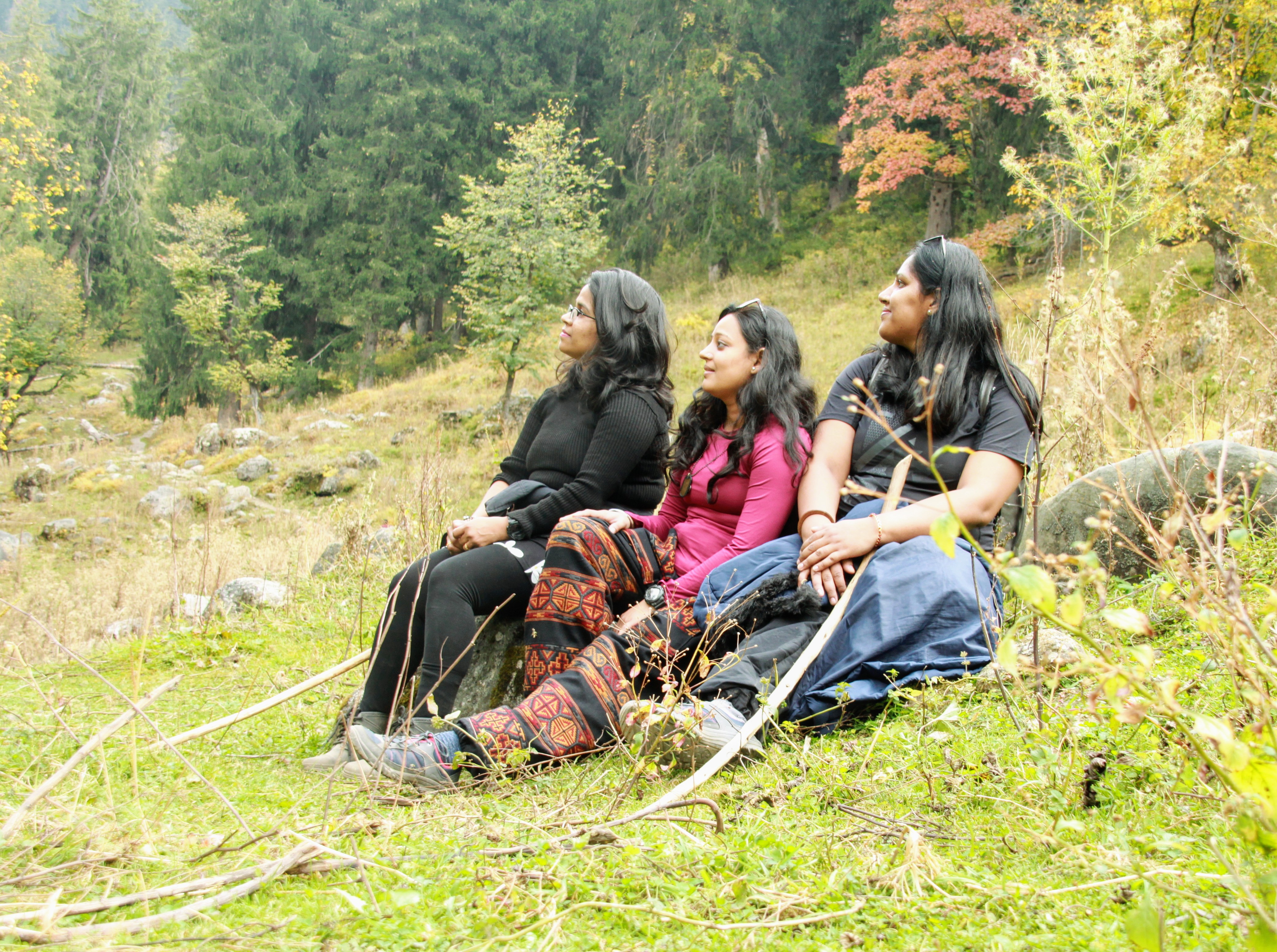 The trek is moderately difficult..But the view is mind blowing..We went during the fall season ..So forest is with different shades of yellow, orange, green,and brown. Forest route is with two or three shops..So half way we had our lunch and pushed forward our legs (tired) with keerganga in our mind..